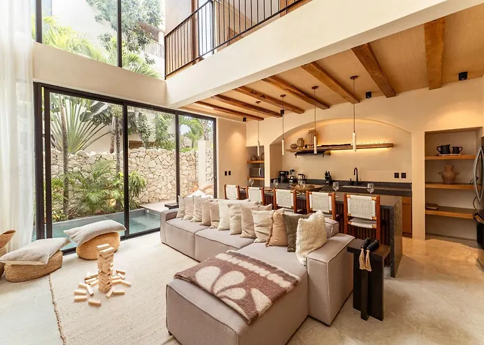 La playa pública de Las Palmas está a unos 10 minutos en coche de la villa, mientras la Zona Arqueológica de Tulum se encuentra a unos 15 minutos en coche. Esta villa ofrece fácil acceso a maravillas naturales como el Parque Dos Aguas (3 km) y el Cenote Escondido (3,1 km).
